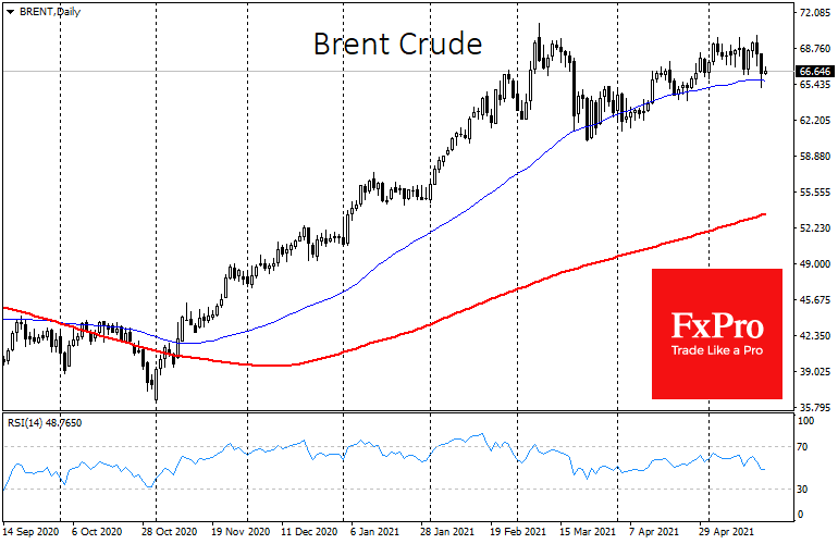При этом внутри дня золото, напротив, получало поддержку: вновь заговорили о возвращении в него институциональных инвесторов из биткоина. Отметим, что золоту удалось вернуться к росту с начала апреля, а биткоин в середине прошлого месяца явно растерял импульс. Впрочем, в более длительной перспективе интерес к этим активам развивается слабо.