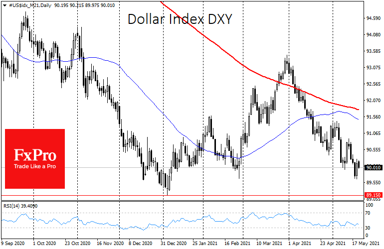 Внутри дня в среду доллар также получал поддержку из-за распродажи, сумев вернуться выше 90 по DXY, корзине из шести наиболее популярных мировых валют. Продолжается борьба за важный уровень поддержки. Чем дольше она проходит, тем сильнее будет движение после капитуляции одной из сторон, быков или медведей.