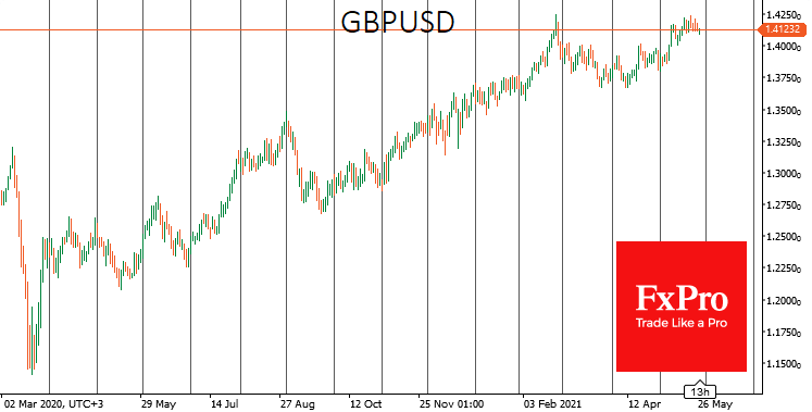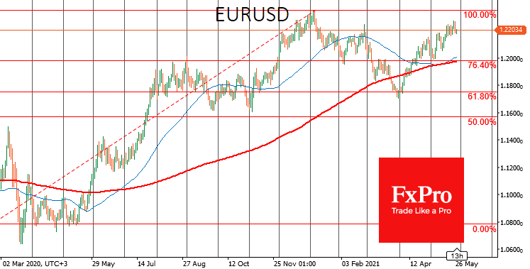 EURUSD на этом фоне вернулась под 1.2200, а GBPUSD откатилась ниже 1.4100, временно опустившись до минимумов за две недели. Это похоже на перетягивание каната у важного рубежа, либо на попытку собраться с силами перед окончательным прорывом или разворотом.