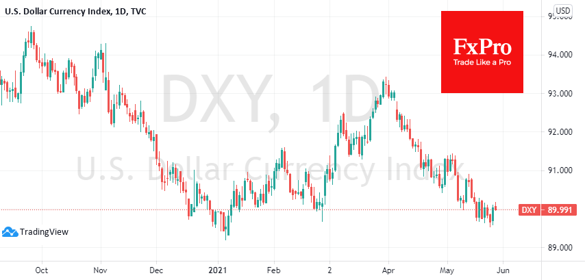 В моменте эти настроения идут на пользу доллару, чье ослабление приостановилось вблизи минимумов этого года. Более того, DXY отскочил выше 90 пунктов – важного круглого уровня. Это может оказаться попыткой сформировать двойное дно и стать основанием для отскока.
