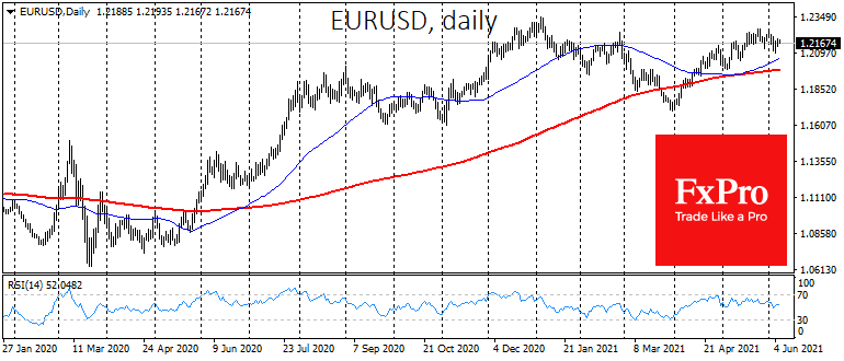 С позиции монетарной политики и моделей поведения евро в 2021 мы видим некоторые аналогии с 2013 годом. Если так, то в ближайшие месяцы пара может продолжить неуверенный рост с регулярными откатами, переписывая при этом локальные максимумы.