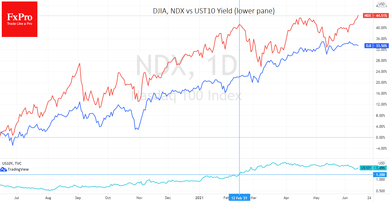 - Nasdaq вновь опережает Dow Jones на вере, что ФРС сохранит политику мягкой