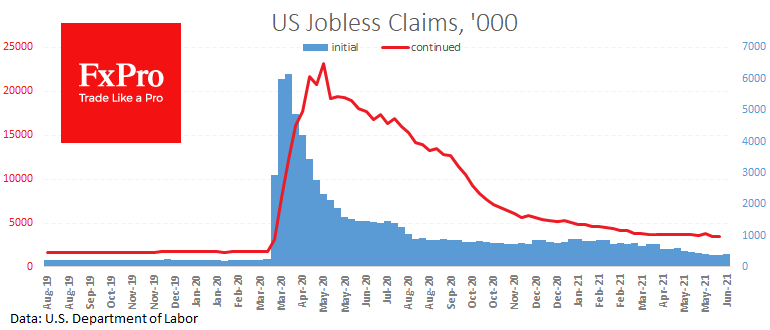 Восстановление занятости резко потеряло темпы в последние недели, несмотря на высокий темп роста экономики. Так как ФРС только вчера высказал свой взгляд на монетарную политику, не стоит ждать, что рынки воспримут свежие данные как хорошие новости, отодвигающие ужесточение монетарной политики. В свете этого давление на сырье и энергию может сохраниться, а доллар может продолжить свое восстановление к основным конкурентам.