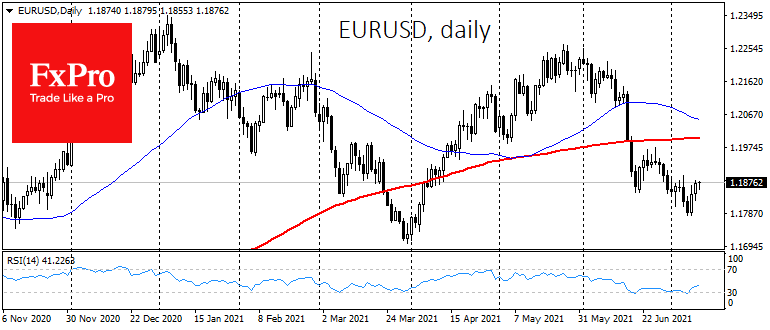 Глава ЕЦБ Кристин Лагард в понедельник утром заявила, что в ближайшие 10 дней объявит о новых правилах монетарного стимулирования после сворачивания существующих экстренных мер. Также она отметила, что уже на следующем заседании будет придерживаться обновленной стратегии монетарной политики, предполагающей временную толерантность к инфляции выше 2%. Потенциально, эти шаги НБК и ЕЦБ говорят о структурной мягкости центробанков, возвращая спрос на рисковые активы.