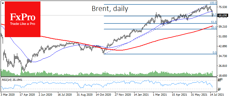 Другой фактор, усиливавший пролив по нефти, – это коррекционные настроения на глобальных фондовых площадках. Они вызваны, в том числе, беспокойством влияния на экономику роста заражений даже в странах с высокой долей вакцинированных.