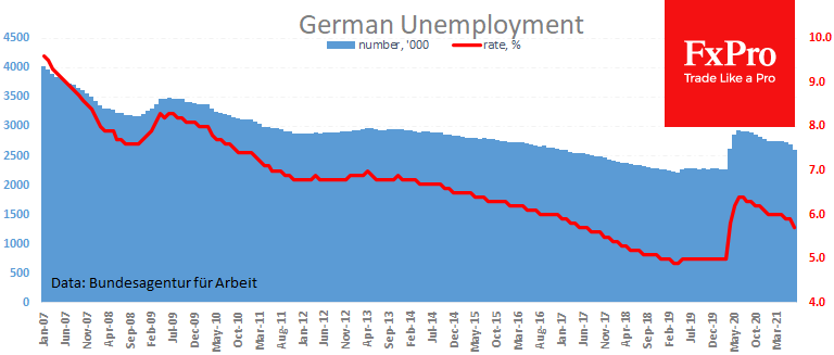 Эти сильные данные способны вернуть в повестку дня вопрос о сворачивании стимулирующих мер в Европе раньше, чем рынки заложили в котировки, что поддерживает спрос на единую валюту. EURUSD все более уверенно формирует «дно», отскакивая от области поддержки.