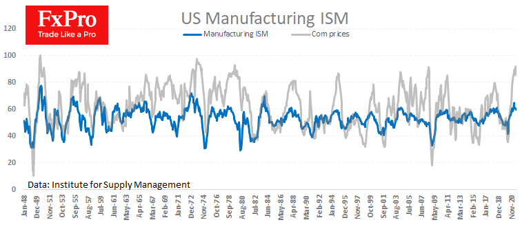 Сейчас индекс производственной активности находится на очень высоких уровнях по историческим меркам, показав в марте этого года максимальную отметку с 1983 года.