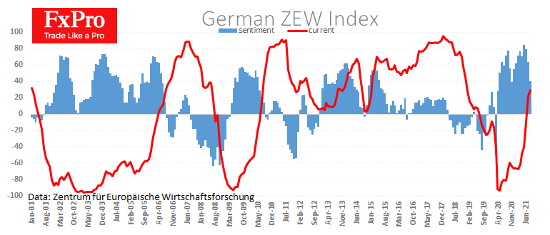 Деловые настроения в Европе продолжают ухудшаться, о чем говорит развитие спада индекса ZEW. Индекс деловых настроений в августе упал до 40.4 после 63.3 месяцем ранее и пиковых значений на 84.4 в мае.