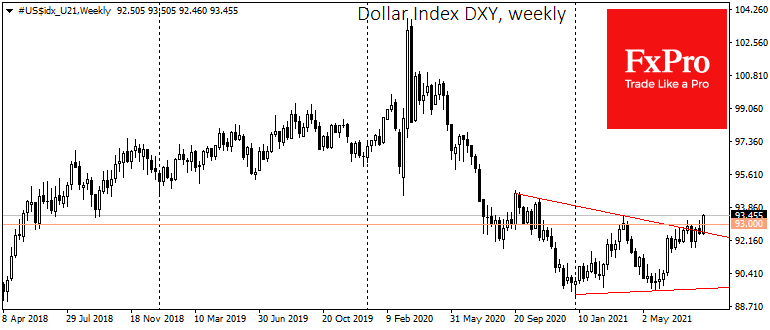 Индекс доллара поднялся до максимального уровня с ноября, превысив уровни разворота июля и апреля, а также указывая на выход вверх из затяжного периода консолидации.