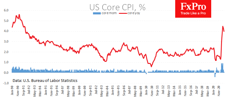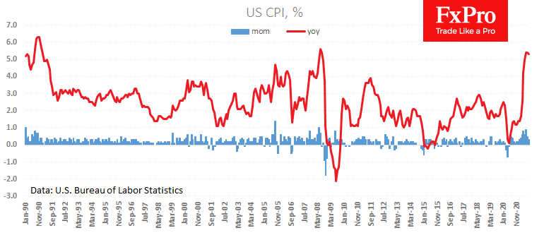 Все же не стоит упускать из виду, что темпы роста цен остаются одними из самых высоких за 30 лет, и при этом продолжают помесячный рост. Скачок цен на нефть и газ в последние дни обещает сохранить часть давления на потребительские цены.