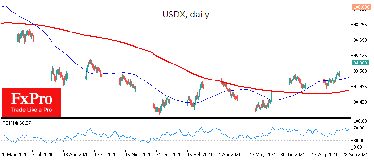 Краткосрочно трейдерам стоит обратить внимание на динамику индекса доллара у 94.5. Выход выше по итогам дня закрепит индекс на максимумах за год, подтвердив бычий тренд, по направлению к 100.