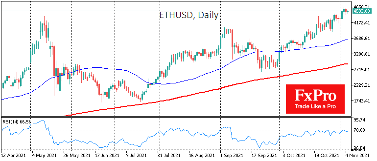 Когда же прилив сменится отливом? Это зависит от глобального спроса на риски, который в свою очередь коррелирует с позицией центробанков и трендами инфляции. Последние комментарии центробанкиров дали понять, что регуляторы продолжают сквозь пальцы смотреть на инфляцию, ожидая что она сама схлынет без повышения процентных ставок. Это хорошие новости для криптовалют с ограниченным предложением, например Эфир.
