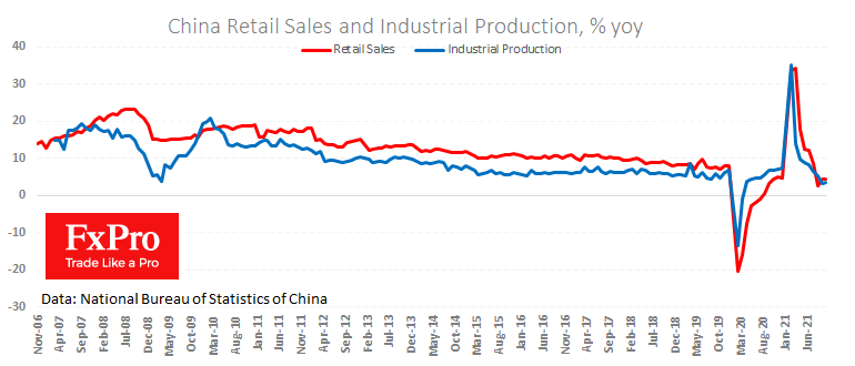 В октябре прирост промышленного производства составил 3.5% г/г против 3.1% месяцем ранее, и это первое ускорение за восемь месяцев. Темпы роста розничной торговли восстановились до 4.9% г/г со всего лишь 2.5% в августе.