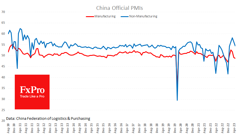 Официальные индексы PMI в сфере услуг и обрабатывающей промышленности вышли заметно слабей ожиданий, усилив тягу в защитные активы из-за беспокойства вокруг экономики Китая.