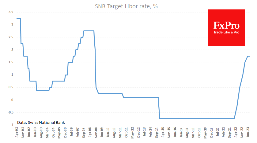 Национальный Банк Швейцарии оставил без изменений основную процентную ставку на 1.75%. Рынки в среднем прогнозировали повышение на 25 пунктов и противоречило нашим ожиданиям.