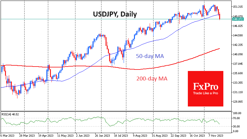 Техническим поводом для распродажи в акциях стала новая волна укрепления иены с утра. В паре USDJPY есть признаки слома восходящей тенденции, так как она углубляется под свою 50-дневную среднюю.