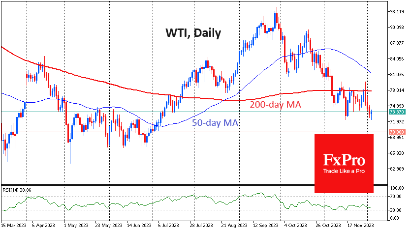 Уже на этой неделе представители картеля напомнили, что могут продлить это или даже углубить сокращения. Но, похоже, что и это не впечатлило трейдеров. Котировки WTI обновили минимум за пять месяцев, уходя под $72.40. Сорт Brent в разгар европейской сессии во вторник удерживается незначительно выше минимумов ноября.