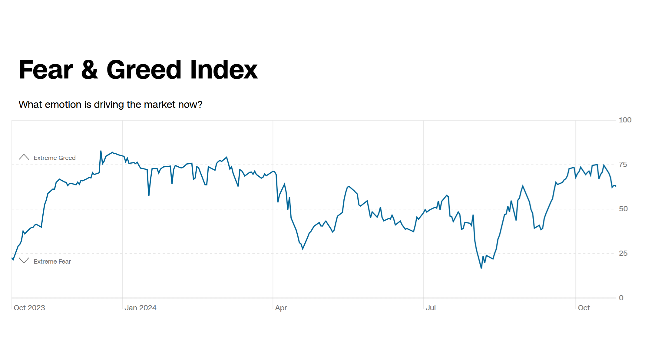 Это может быть как краткосрочной фиксацией рисков перед важными событиями, так и стартом более глубокого снижения. Мы с настороженностью отмечаем выход индекса Страха и жадности из области 70–75, где он находился с конца сентября. В последний раз похожая ситуация была в апреле, и S&P500 потерял более 6.5% от пика, прежде чем нащупал дно.