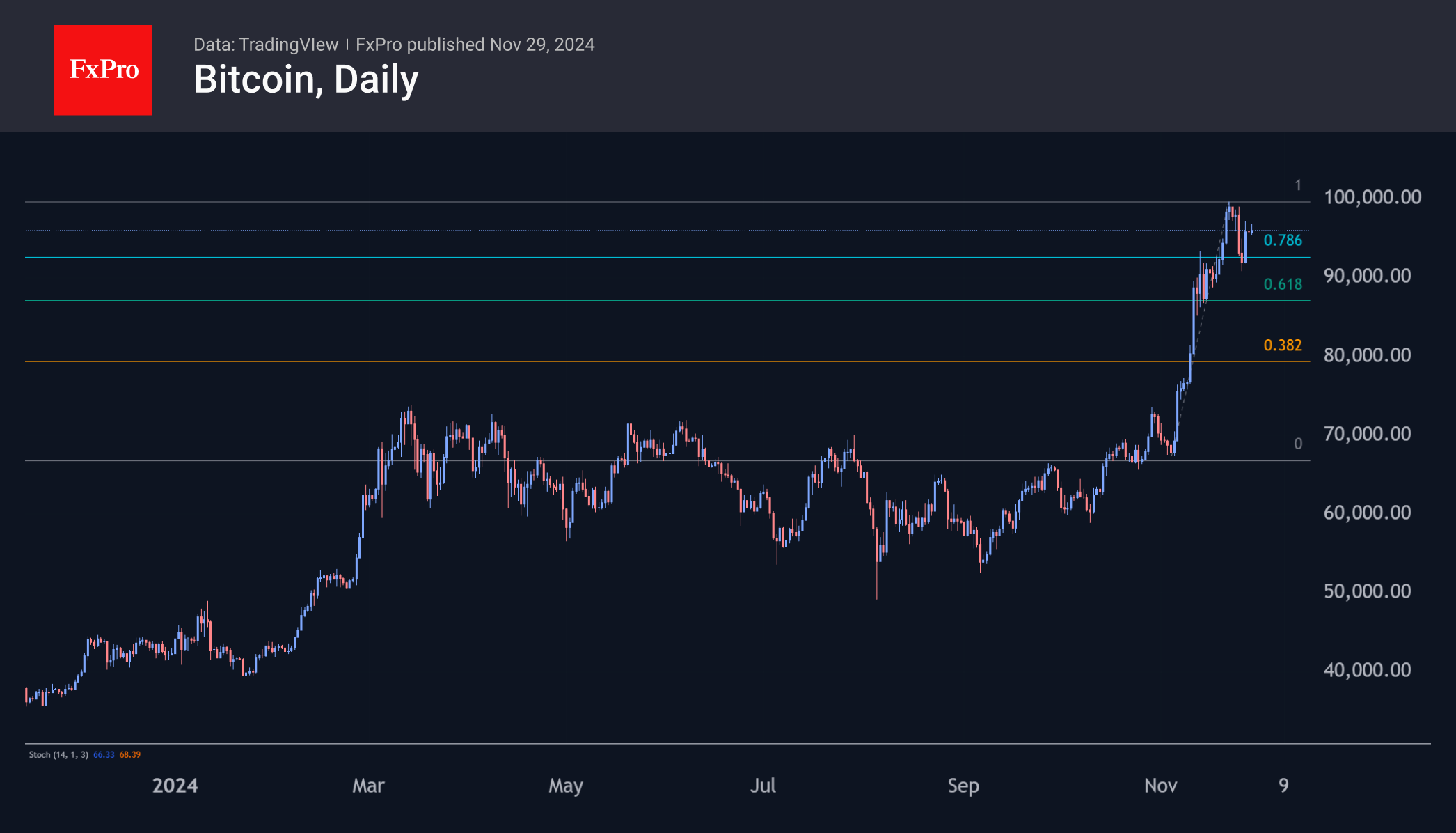 На старте торгов в пятницу биткоин вновь подходил к $97K, где последний раз был в среду. Сниженная ликвидность из-за праздничных дней в США сдерживает волатильность, оставляя BTCUSD в середине торгового диапазона $92–100K. Только выход за его пределы пробудит волатильность и даст сигналы о последующем среднесрочном тренде рынка.