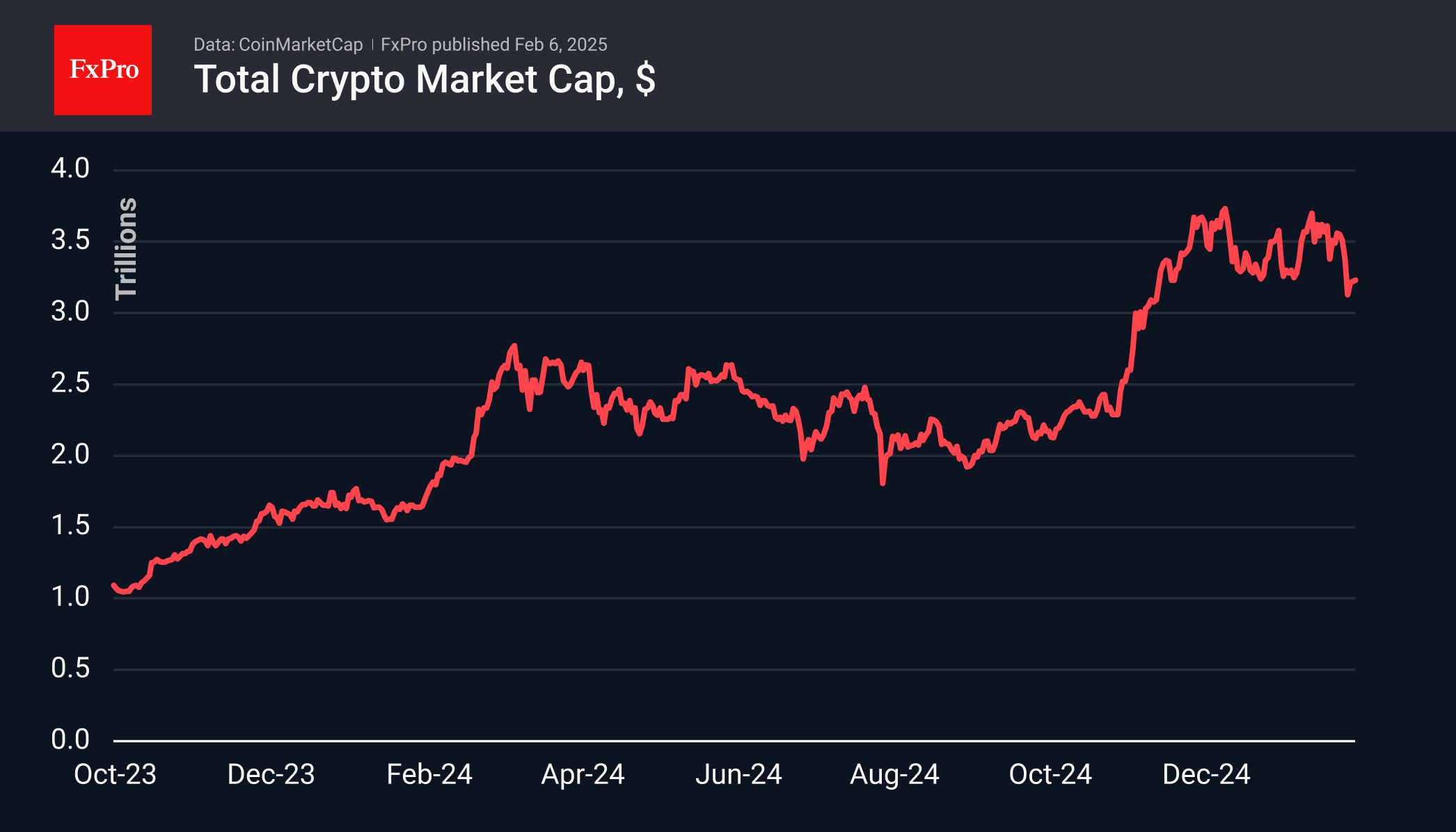 Криптовалютный рынок не спешит восстанавливаться. Проторговывая капитализацию вблизи $3.3 трлн, крипторынок консолидируется на более низкой ступеньке. До этого была консолидация вблизи $3.5 трлн, а две недели назад – чуть ниже $3.8 трлн.