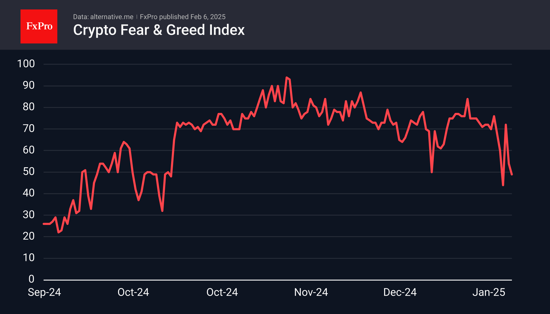 Похоже, что мы увидели очередную «продажу на факте», так как рост остановился после инаугурации Трампа, на которую крипто энтузиасты возлагали большие надежды. Индекс настроений к концу первой недели февраля откатился в нейтральную территорию.