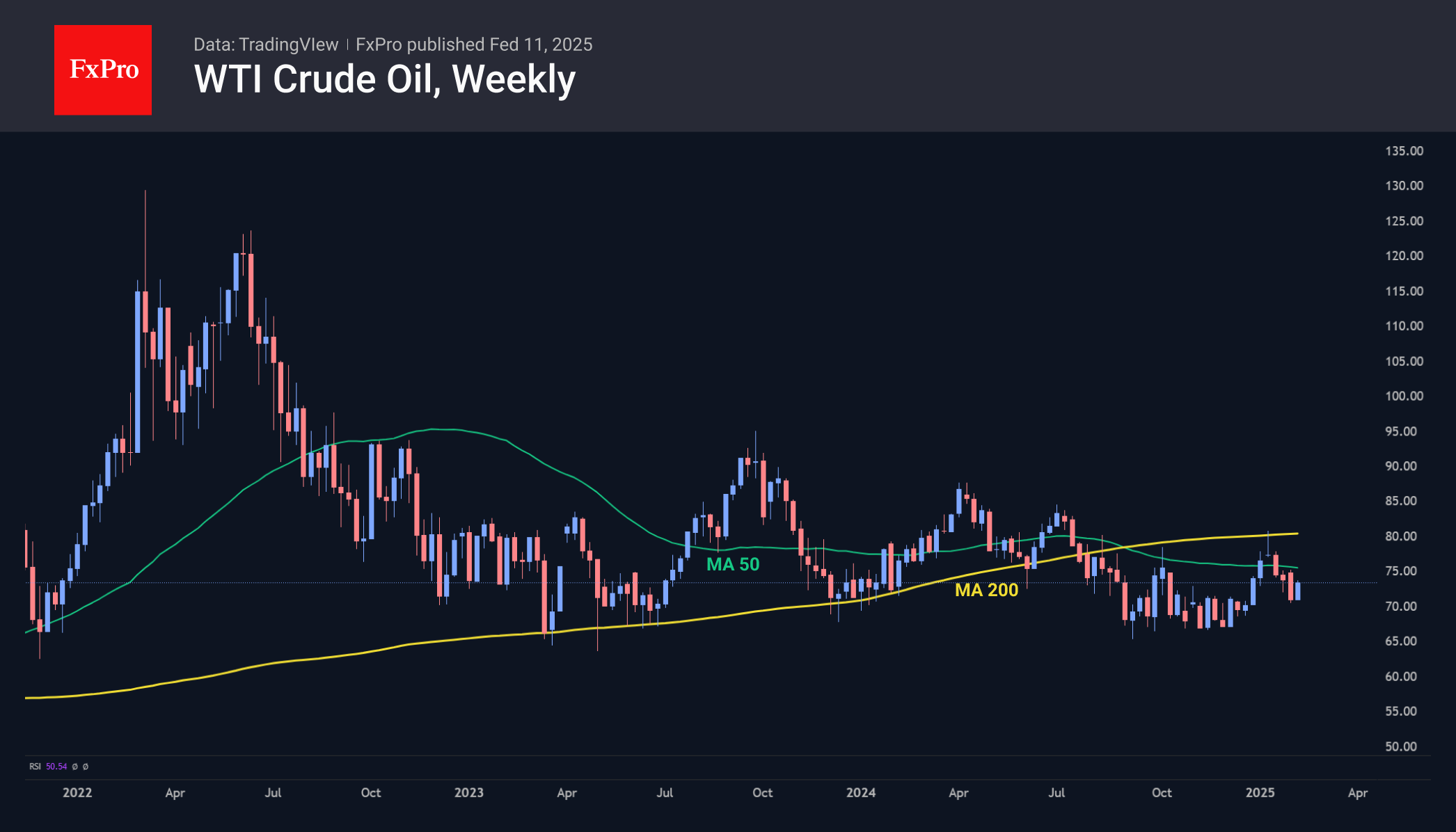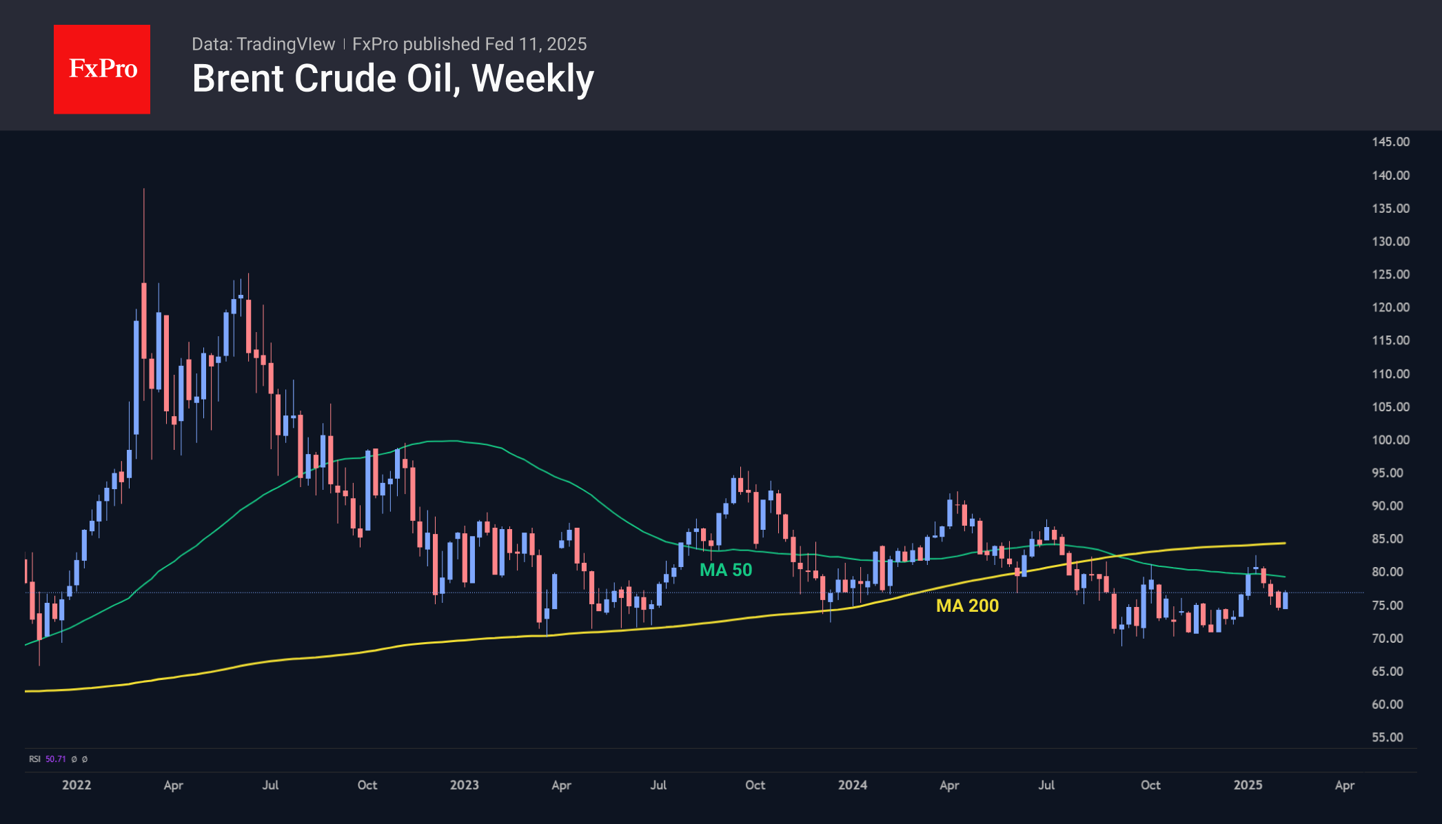 Неопределённость рынка нефти можно констатировать пока продолжаются торги в диапазоне $70-$80 за баррель Brent и $67-77 за WTI. Провал под нижнюю границу утвердит, что коррекционный отскок прошлого года поглощён. Закрепление над верхней границей утвердит важность поддержки, обозначив старт повышательной тенденции.