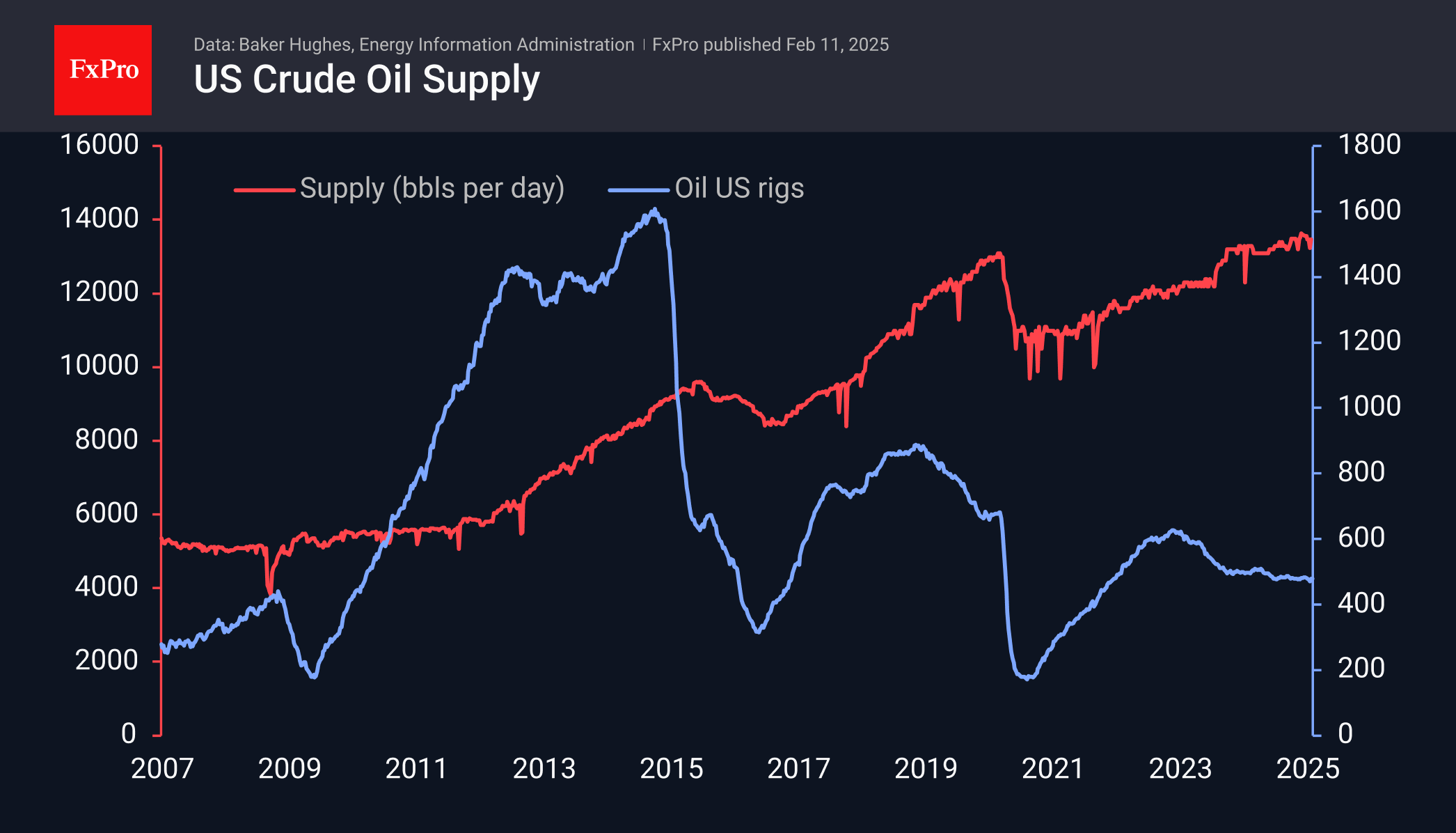 Смена тенденции сокращения на плато указывает на изменение настроений нефтедобытчиков, которые склонны увидеть больше благосклонности от администрации Трампа к традиционным нефтепродуктам против того, что было во времена Байдена.