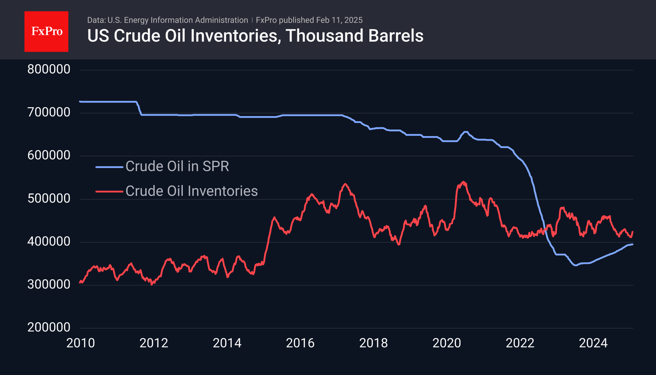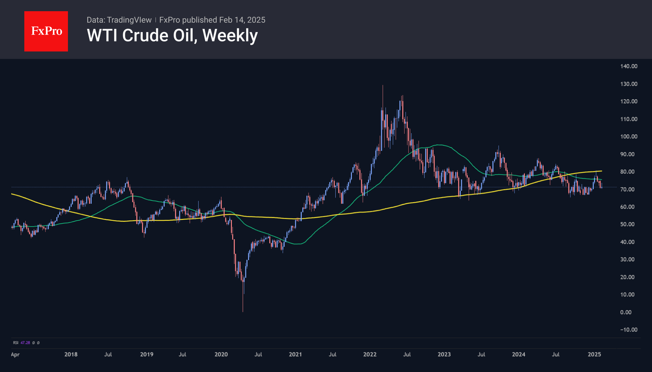 В течение недели нефть пережила 4% рост и полностью отыграла его, откатившись к ценам шестинедельной давности на звонках Трампа лидерам России и Украины в ожидании геополитической разрядки.