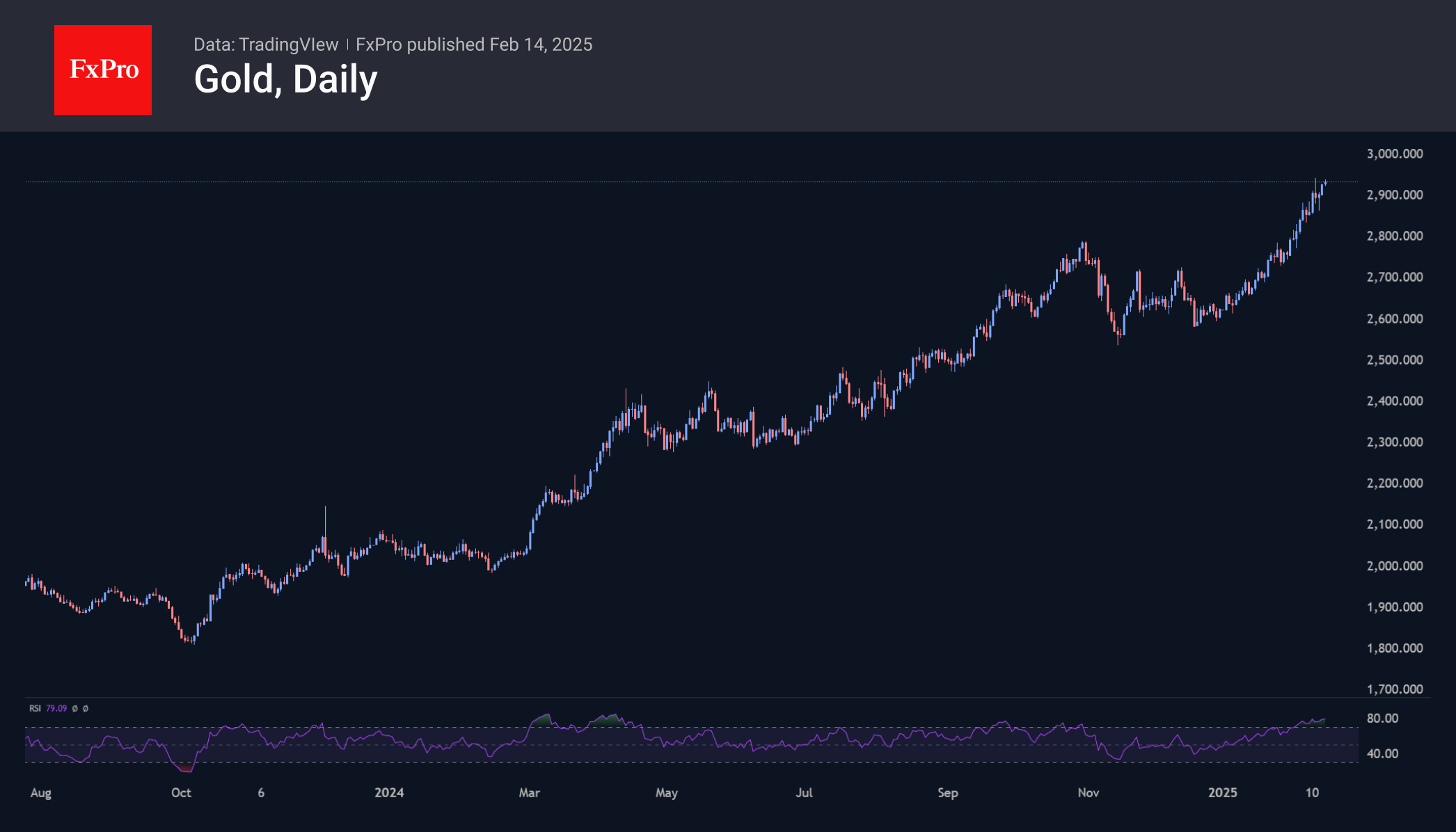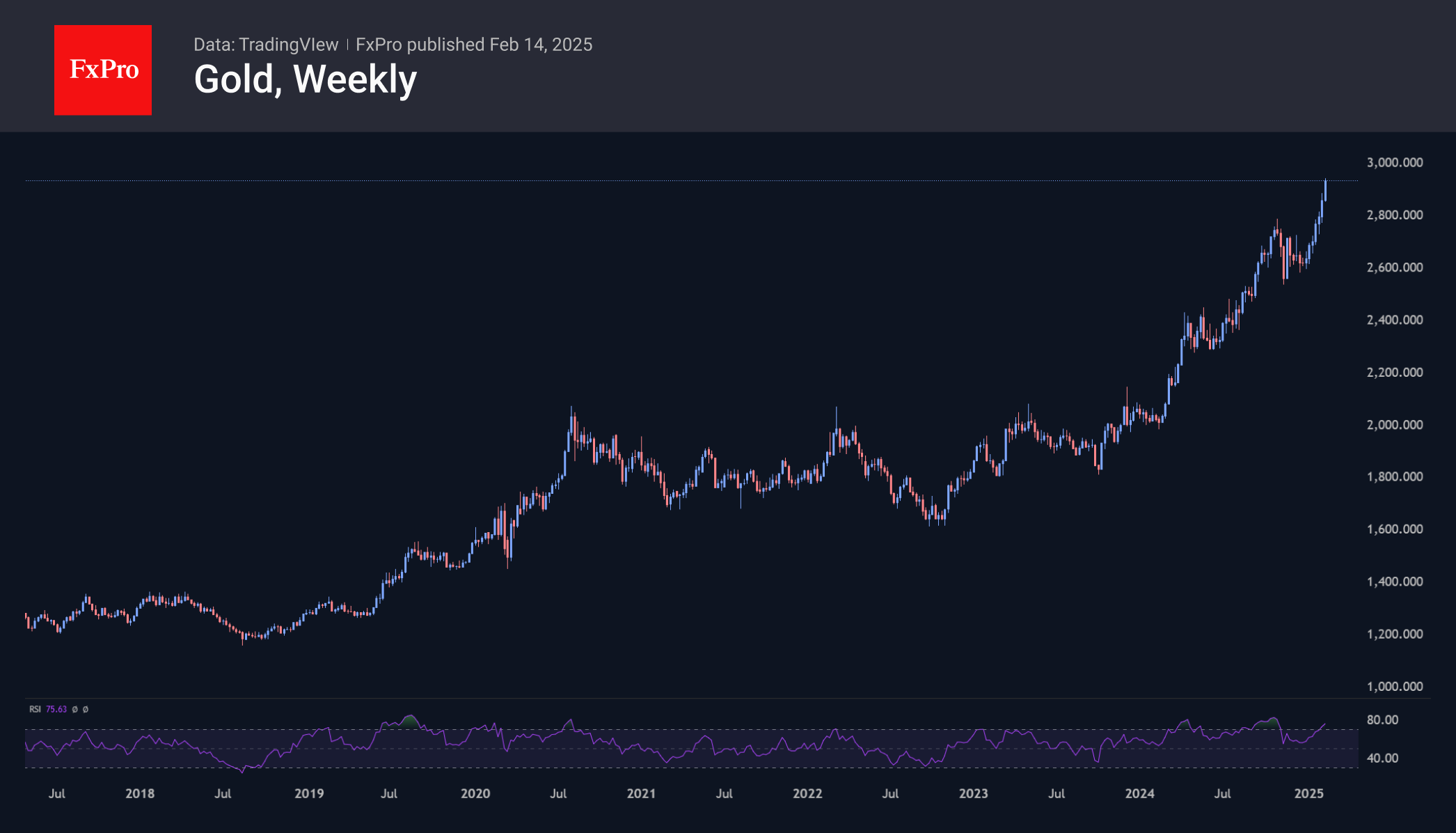 Рост золота постепенно перестаёт быть таким однозначным. За взлётом выше $2940 в начале недели последовал быстрый откат почти на $80. Однако к концу недели золото вновь пошло в рост. Это верный признак, что покупатели стали осторожней, но продолжают толкать цену вверх.
