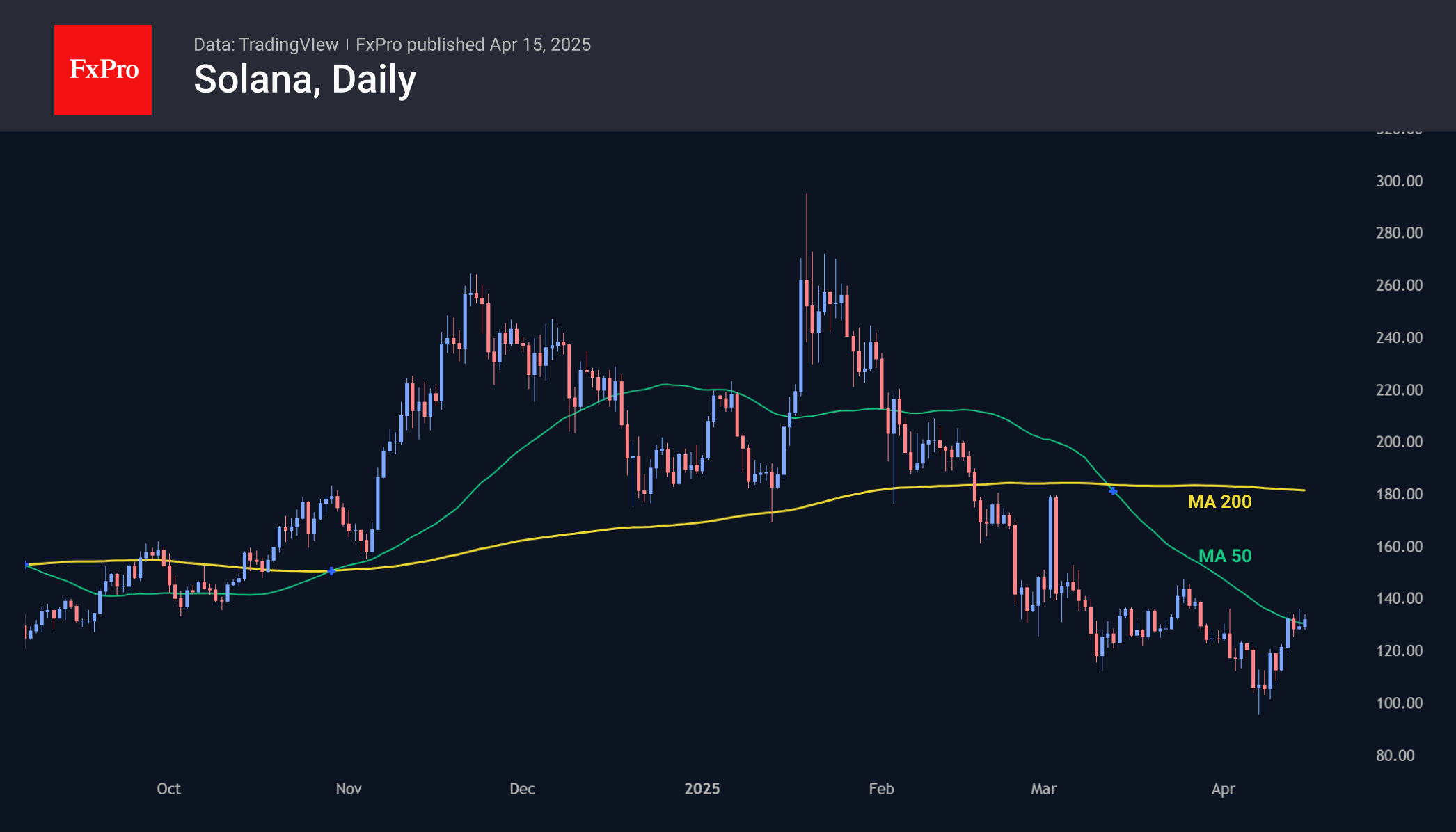 Solana прибавила 20% за последние семь дней. С технической точки зрения, это попытка вернуться в зону бычьего рынка. Solana восстанавливается быстрее многих крупнейших альткоинов, торгуясь у своей 50-дневной скользящей средней вблизи $130. Закрепление выше этого уровня откроет дорогу к $145 — зоне предыдущих пиков. Устойчивый выход выше них станет сигналом слома нисходящей тенденции и может привести к движению к $180.