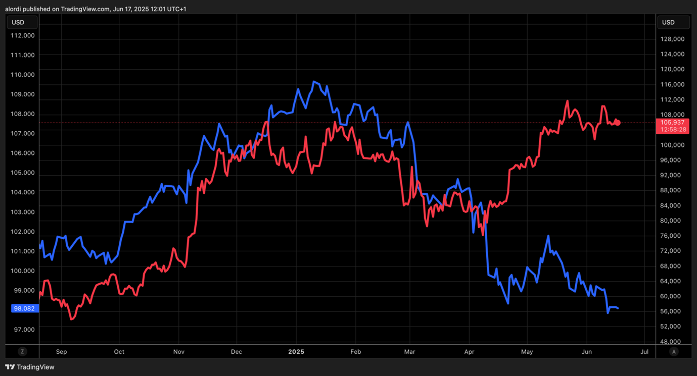 Именно слабость доллара США в 2025 является одним из ключевых драйверов 13%-го ралли BTCUSD с начала года. Если индекс USD продолжит падать из-за проводимой Белым домом тарифной политики, биткойн подрастёт.