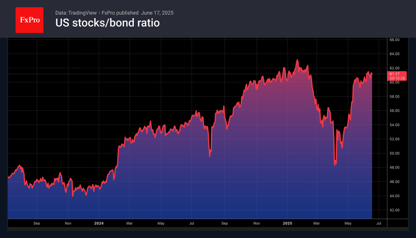 Биткойн не смог извлечь выгоду из роста рисковых настроений на финансовых рынках. Соотношение американских акций и казначейских облигаций США достигло максимальной отметки со времен инаугурации Дональда Трампа. S&P 500 вырос благодаря сообщениям о готовности Ирана возобновить переговоры с Соединенными Штатами. Инвесторы считают, что самое худшее в конфликте на Ближнем Востоке уже позади. Что он в скором времени закончится.