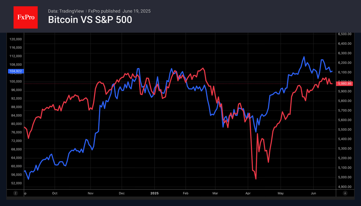 Его дальнейшая судьба во многом зависит от развития событий на Ближнем Востоке. Эскалация в виде вовлечения других стран и перекрытия Ираном Ормузского пролива чревата дальнейшим ухудшением глобального аппетита к риску и развитием отката к восходящему тренду по BTCUSD.