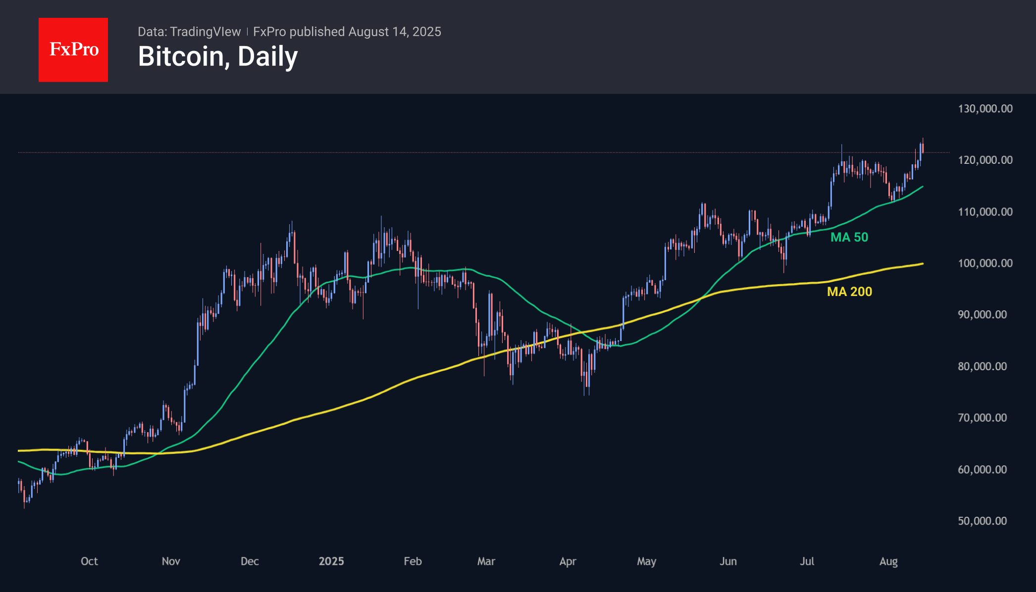 Биткоин уверенно прибавлял на протяжении всей среды, проскользнув до нового исторического максимума у $124.5K на тонких ранних торгах в Азии в четверг, но откатившись ниже $122K на момент написания. Покупатели усилили натиск за счёт позитивных настроений на мировых рынках, где многие ключевые индексы обновляли исторические максимумы.