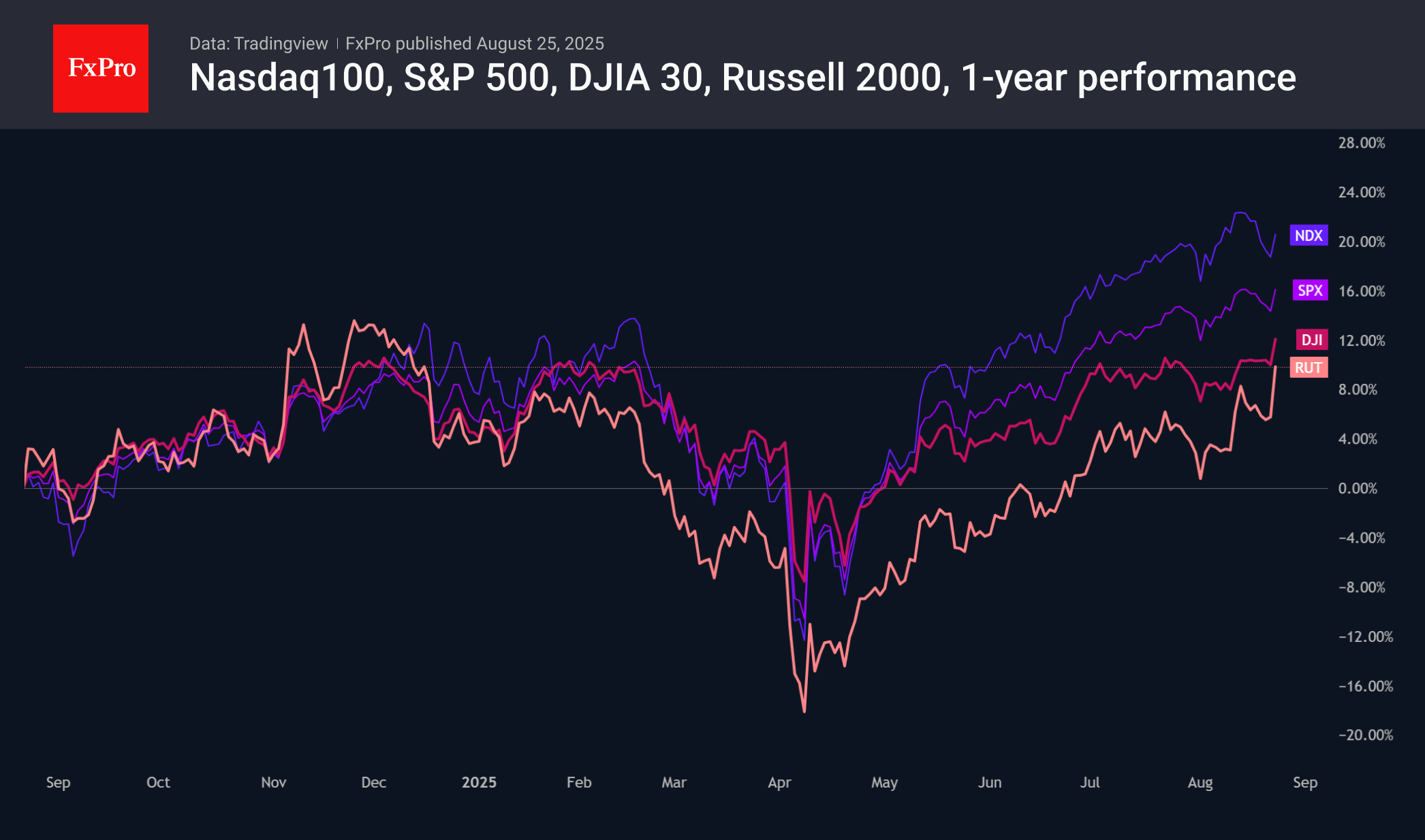 Эти два индекса опережали Nasdaq100 и S&P500 в пятницу, так как смягчение монетарной политики – можно смело считать приливом, который разом поднимает все лодки в море. В противовес росту рынка на высокотехнологичных тяжеловесах, динамика которых слабо коррелирует с монетарным режимом.