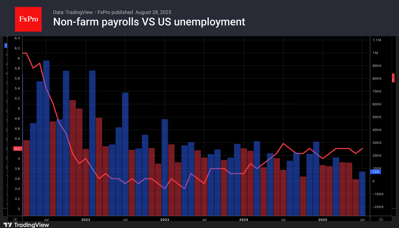 Ключевым событием первой недели сентября станет отчёт о рынке труда США за август. Разочаровывающая статистика за май-июль привела к «голубиному» сдвигу ФРС. Если данные продолжат ухудшаться, Федрезерв может снизить ставки не один раз до конца 2025.