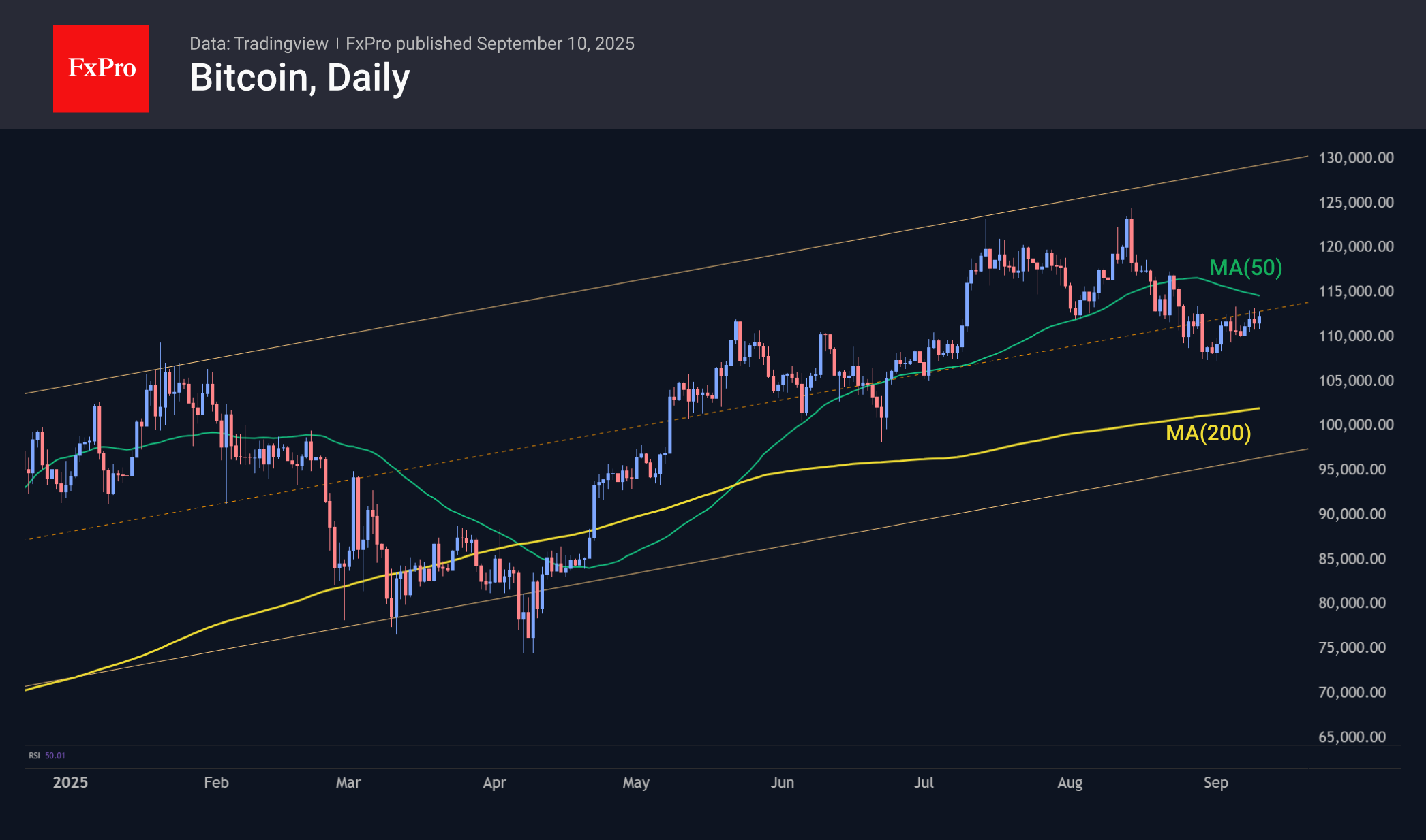 Биткоин продолжает привлекать покупателей на внутридневных спадах, формируя плавную и довольно хрупкую тенденцию роста, переведя основную борьбу быков и медведей на уровне $112K против $111K несколькими днями ранее. И всё же реальным тестом для быков выглядит уровень $115K, чуть выше 50-дневной скользящей средней. Способность удержаться выше будет важным сигналом возвращения оптимизма, а пока мы лишь можем отмечать тревожное отставание BTC от фондовых индексов, находящихся у максимумов.