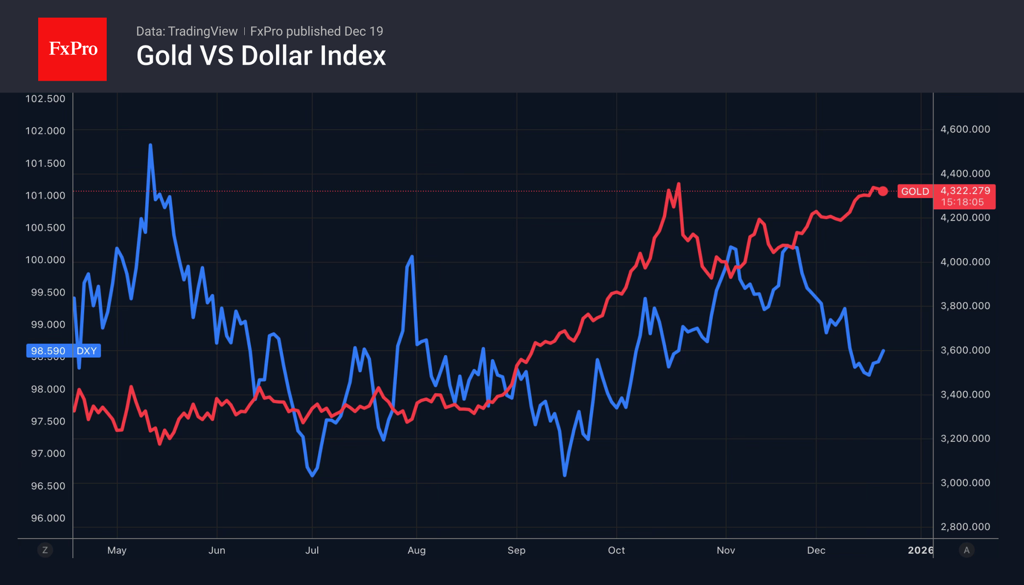 Доллар США укрепился против основных мировых валют, так как инвесторы проигнорировали замедление американской базовой инфляции до 2.6% в ноябре. Речь идёт о минимальной отметке с начала 2021. После шатдауна BLS испытывает проблемы с данными. Необходимо время, чтобы доверие к ним вернулось.