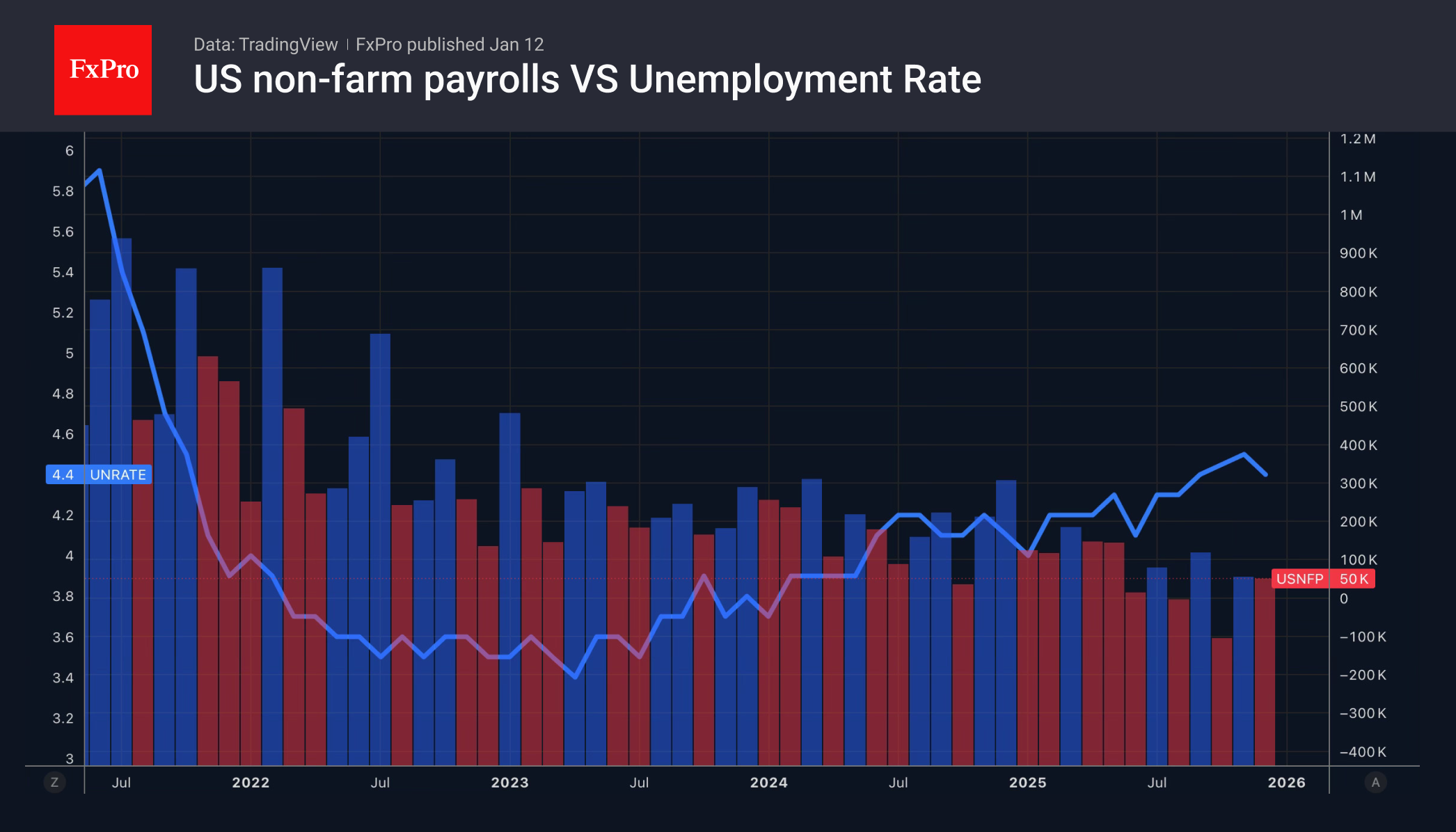 Если статистика по рынку труда укрепила доллар США, то судебный иск Министерства юстиции против Джерома Пауэлла его серьёзно ослабил. Индекс доллара США в понедельник показал самое сильное падение за три недели из-за опасений, что Белый дом может подорвать независимость ФРС, заполнив FOMC «голубями». Этот риск резко контрастирует с текущими ожиданиями всего двух снижений ставок до конца 2026 года.