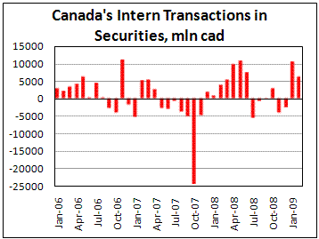 - Покупки канадских ценных бумаг сократились более чем на 4 млрд., но сальдо осталось положительным