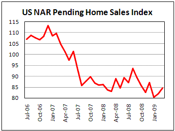 Индекс активности на рынке жилья вырос в марте на 3,4%, оказавшись заметно лучше прогнозов. Состояние рынка недвижимости пристально отслеживается рынком, и вызывает массу споров о том, пройдено ли дно. На выходных Уоррен Баффет довольно пессимистично высказывался по этому вопросу, заставив инвесторов несколько осторожней относиться к статистике рынка жилья. Тем не менее, сегодняшний отчет показал рост продаж в сравнении с мартом 2008 года на 1,1%. Это еще нельзя назвать твердыми признаками стабилизации, но в сочетании с остальными отчетами с рынка жилья, дают четкий сигнал, что рекордные темпы снижения остались позади. Пессимисты говорят о всплеске, происходящем только благодаря увеличению активности по рефинансированию долгов из-за снижения ставок банками. Но при этом нужно отметить еще и усилия Федерального Резерва в этом направлении. Одним из последних новшеств стало увеличение сроков кредитования Федрезервом под залог ипотеки с 3 до 5 лет, что может дополнительно повысить активность в данном секторе. После отчета склонность к риску продолжила увеличиваться, развивая тему преодоления долларом ключевых (200-дневных) отметок скользящих средних против иены, австралийского и канадского долларов. Приближения к этой отметке EUR/JPY. Пока не вызывает опасений на этот счет фунт, а вот по EUR/USD этот уровень пролегает через 1,35 и может быть достигнут на этой очень насыщенной событиями недели.