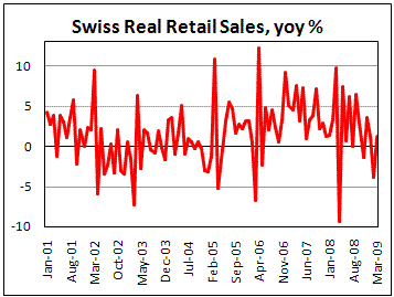 Розничные продажи в Швейцарии в марте выросли на 1,2% к соответствующему месяцу прошлого года. Показатель продемонстрировал улучшение к предшествующему месяцу, когда снижение составляло 3,8%. Данные колебания, скорее всего, вызваны сезонными факторами, поэтому изолированного существенного влияния на франк не оказал: пара eur/chf снижается из-за слабых показателей ВВП еврозоны, а gbp/chf растет, так как слабые показатели первого квартала были известны раньше и повлияли на пересмотр прогнозов по ее экономике. Тем не менее, общий тренд остается нисходящим, что хорошо видно на графике. Тем не менее, по отношению к единой валюте франк к неудовольствию Национального Банка Швейцарии растет. В то же время зависимость от состояния экономики Германии позволяет прогнозировать слабость в Швейцарии из-за существенного сокращения товарооборота с этой страной.