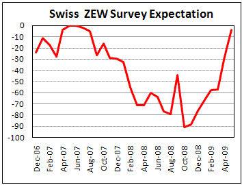 Индикатор экономических настроений Швейцарии от ZEW резко вырос в мае, поднявшись до -3,9 пункта с -27,7. Это исследование идет в ногу с опубликованными днем ранее показателями для Германии и Еврозоны в целом. Отмечается очень резкий рост индекса ожиданий восстановления экономики, в то время как оценка текущих условий ухудшена. Респонденты также отметили, что в целом удовлетворены мерами по количественному ослаблению монетарной политики и видят произведенные ими улучшения. В то же время, отмечается рост опасений, что подобные меры приведут к всплеску инфляции. Тем не менее, публикации этого показателя оказалось достаточно, чтобы поддержать рост швейцарского франка, как этого было достаточно вчера для единой валюты. Что ж, несмотря на очевидно, самые плохие квартальные показатели по экономике за последние несколько десятилетий, экономические индикаторы, демонстрируют разворот в сторону роста. Как предвестником резкого обвала экономики были индексы потребительской уверенности и активности, так и сейчас, они, вероятно, первыми демонстрируют признаки жизни. Многие говорят, что резкий спад за последние полгода помог экономике обновиться. Также нельзя исключать и широкого освещения в СМИ мер правительства и Центробанка, которые повышают доверия населения к политике.