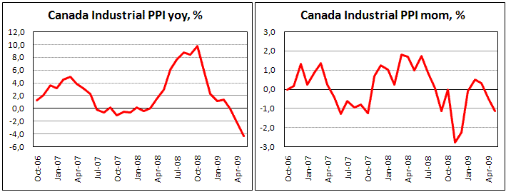 Валовой продукт Канады сократился в апреле на 0,1%, как и ожидалось в соответствии со средним рыночным прогнозом. К апрелю прошлого года реальный ВВП потерял 3,0%, однако эта новость не способна оказать серьезного воздействия на рынки, так как информация в целом вышла в рамках прогноза. По итогам года наиболее пострадавшими секторами стали производство дорогостоящих товаров (-17,6%), в целом обрабатывающая промышленность, потерявшая 13,8%, а также оптовая торговля (-12,6%) за счет необходимости компаний корректировать объем запасов на фоне сокращения потребительского спроса. Канадский доллар в последние дни отличается крайне вялой динамикой из-за неопределенности вокруг цен на нефть. Они и перестали расти «весенними» темпами, но и снижаться пока нет серьезных поводов. Другой релиз, опубликованный сегодня Statcan показал, что цены производителей продолжают снижаться, потеряв в мае 1,1% и доведя годовую дефляцию до 4,3%. На фоне растущих сырьевых рынков, подобная слабая динамика отражает спад потребительской экономической активности, что является негативным сигналом для канадской валюты. USD/CAD остановился в районе 1,1550, совершая незначительные колебания вокруг это отметки с пятницы, однако на фоне начавшегося роста доллара США, пара может продолжить восходящий тренд, начатый еще в первых числах июня.