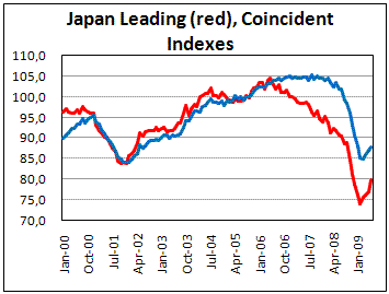 - Опережающие индикаторы Японии ускоряют рост, хотя дефляция в стране может продлиться до 2011г
