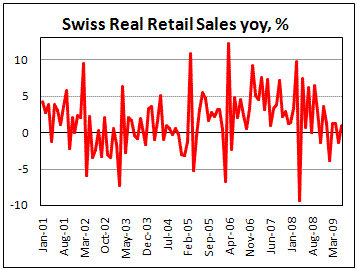 Реальные розничные продажи в Швейцарии выросли в июне на 0,9% по сравнению с июнем прошлого года. При этом месяц назад сообщалось о сокращении на 1,4%. Таким образом, отрицательный тренд не распространился на статистику июня. За первое полугодие рост продаж в реальном исчислении составил 0,5%, что весьма неплохо в сравнении с показателями других стран. В США июньские данные отразили падение на 9,1% (если приплюсовать негативную динамику CPI, то снижение приблизительно составляет 7,7%), в еврозоне -2,4% (с учетом снижения цен – на 2,3%). Сравнимые показатели роста розничных продаж наблюдаются в Великобритании, но там показатель CPI находится в положительной территории, что несколько подстегивает покупки. Годовое снижение CPI Швейцарии в июне составило 1,0%, а в июле усилилось до 1,2%. В Швейцарии мы видим относительно здоровый потребительский спрос, несмотря на снижение занятости. Тем не менее, такая ситуация может не сохраниться в дальнейшем, так как по всему миру распространяются довольно пессимистичные настроения, что «V-образного восстановления может не быть». (Неужели?!)