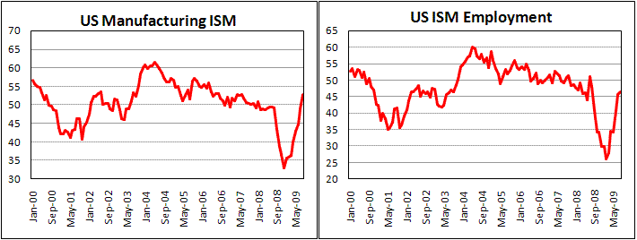 Согласно опубликованным в понедельник данным, число объявлений с вакансиями выросло в августе, отметив продолжающееся изменение тренда на рынке труда. За месяц общее число объявлений, размещенных Он-лайн выросло на 160 тыс. А число новых впервые с декабря превысило 2 млн. Это очень хорошие сигналы, свидетельствующие о том, что сокращения числа рабочих мест в экономике могут резко замедлиться. Сейчас прогнозируется сокращение числа payrolls приблизительно на 200 тыс., хотя по факту мы можем увидеть сильный пересмотр прошлых данных (часто бывает в сентябре). В итоге продолжающееся улучшение показателей рынка труда должно стимулировать покупки рисковых активов, так как прогнозы спроса улучшаться. Скорее всего, начало осени может быть ознаменовано выходом за пределы флета, в котором торговались валюты на протяжении летних месяцев, причем состояние экономики, а также монетарная политика позволяет говорить о более высоких шансах пробития этих каналов вверх.