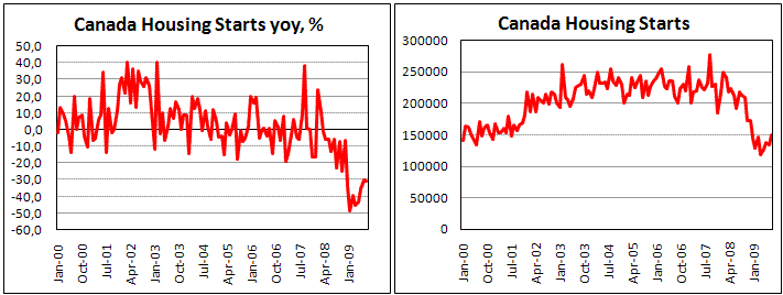 Статистика рынка жилья Канады дает весьма противоречивую информацию. Сегодня было опубликовано, что число начатых строительств в августе вырос сразу на 12,1%, поставив максимальный уровень в этом году. Падение к августу прошлого года составило 30,9%, ясное улучшение в сравнении с февральским обвалом на 48,4%. Вчера же мы получили статистику о сокращении числа одобренных заявок на начало строительств сразу на 11,4%. Однако, те данные указывали на резкое развитие негативных тенденций в сфере нежилой недвижимости, в то время как жилищное строительство продемонстрировало не самое сильное падение.
