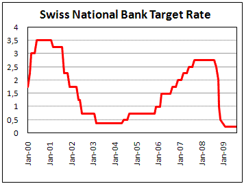 Национальный Банк Швейцарии сохранил без изменений 3-х месячного Libor в районе 0,0-0,75%. При этом целевым ориентиром остался уровень 0,25%. В то же время не обошлось и без оптимизма, свойственного банкирам ЦБ в последние месяцы. SNB пересмотрел в сторону повышения прогноз по уровню ВВП в текущем году до -1,75% против -2,75% полгода назад. Такое улучшение связано с тем, что экономика продемонстрировала большее оживление, чем оценивалось ранее. К тому же положительную роль должны были сыграть и максимальный за много месяцев профицит международной торговли. Изменилась и оценка инфляции среди банкиров. В то время как краткосрочный прогноз оставлен на уровне -0,5% в 2009г, то отмечается принципиальное изменение долгосрочной инфляции. Годовой прирост цен в 2011г. оценивается в 0,9%, против 0,3% ранее, ускорившись, а не замедлившись к 2010г. В таком случае Центральный Банк может пойти на повышение ставок уже во второй половине будущего года, прогнозирует UBS. Тот факт, что настроения в отношении инфляции так быстро развернулись в сторону роста за полгода, позволяет говорить о том, что события могут происходить даже быстрее. Danske Bank прогнозирует ужесточение уже во втором квартале будущего года. При этом представитель Банка повторил, что стоит на страже валютных курсов, после чего франк рефлекторно упал, но ненадолго. Перепроданный на этой неделе франк вернулся в рамки прежнего торгового диапазона ниже 1,52 по EUR/CHF и к 1,03 в USD/CHF.