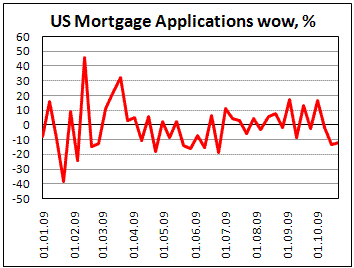 Менее важные, но все же показательные данные пришли также из ипотечного сектора. Как сообщила Ассоциация ипотечных банкиров, индекс активности упал на прошлой неделе на 12,3% против снижения на 13,7% еще неделей ранее. Вероятно, на это повлиял рост ставок по кредитам, который за последние четыре недели составил 19 б.п. пустяк в сравнении с почти полуторапроцентным снижением ставки за прошедший год, но все же такая динамика вызывает некоторую тревогу: не слишком ли рано банки приступили к повышению ставок, и не обрушится ли весьма слабый рынок жилья под новой волной оттока покупателей.